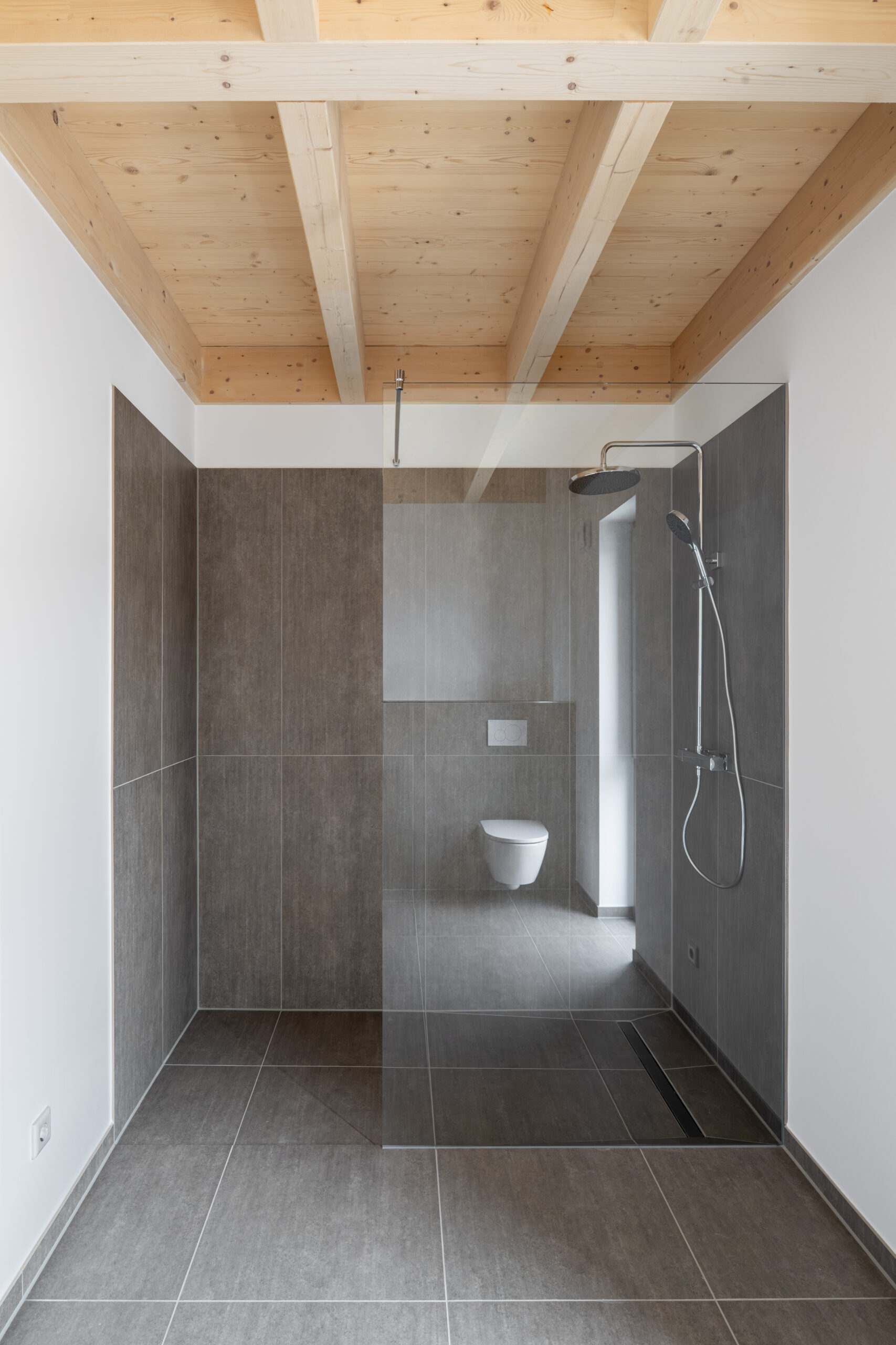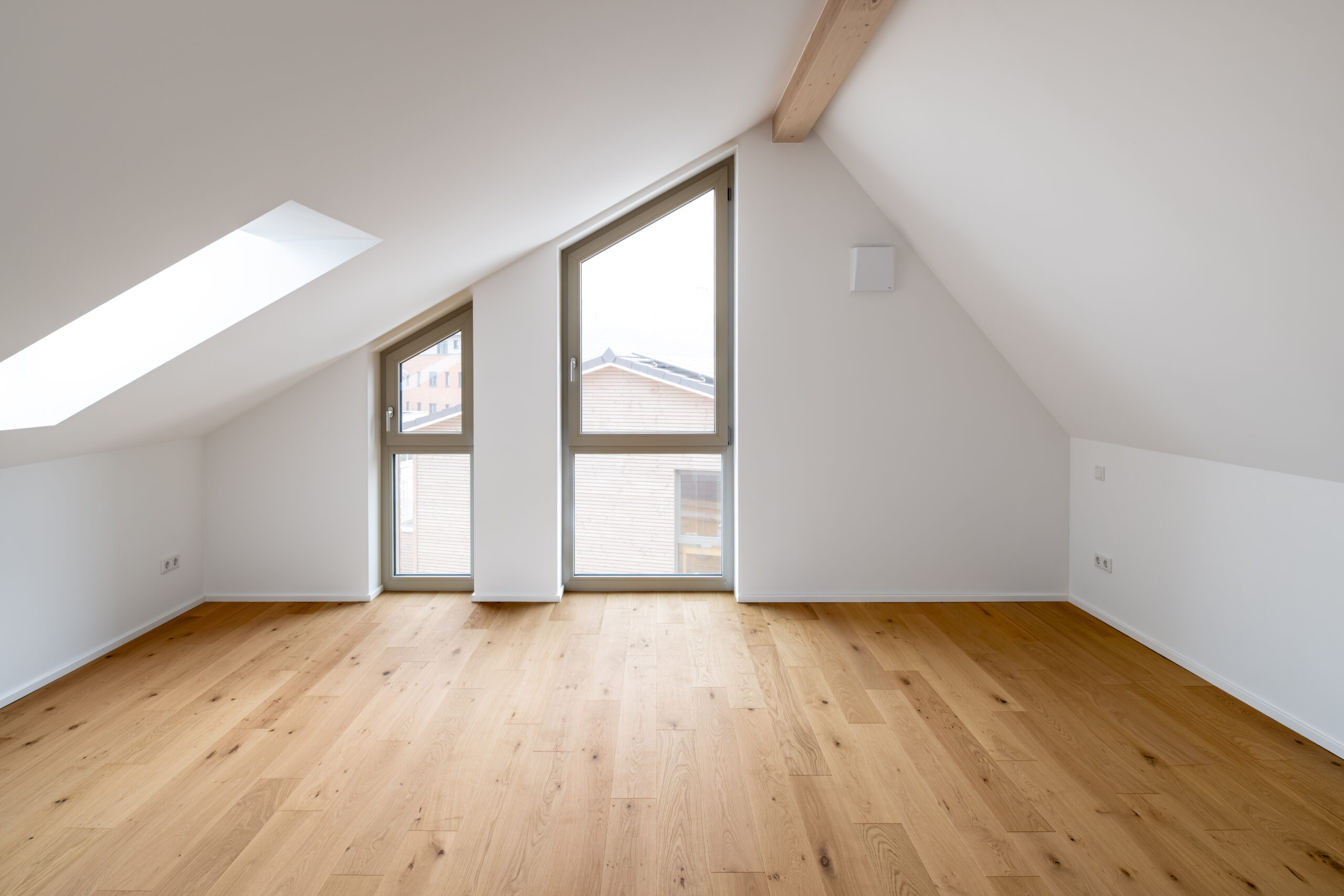 Die Dächer verfügen je nach Neigung und Gebäude über eine Abdichtung mit extensiver Begrünung oder Dachsteine zur Aufnahme von PV-Anlagen.