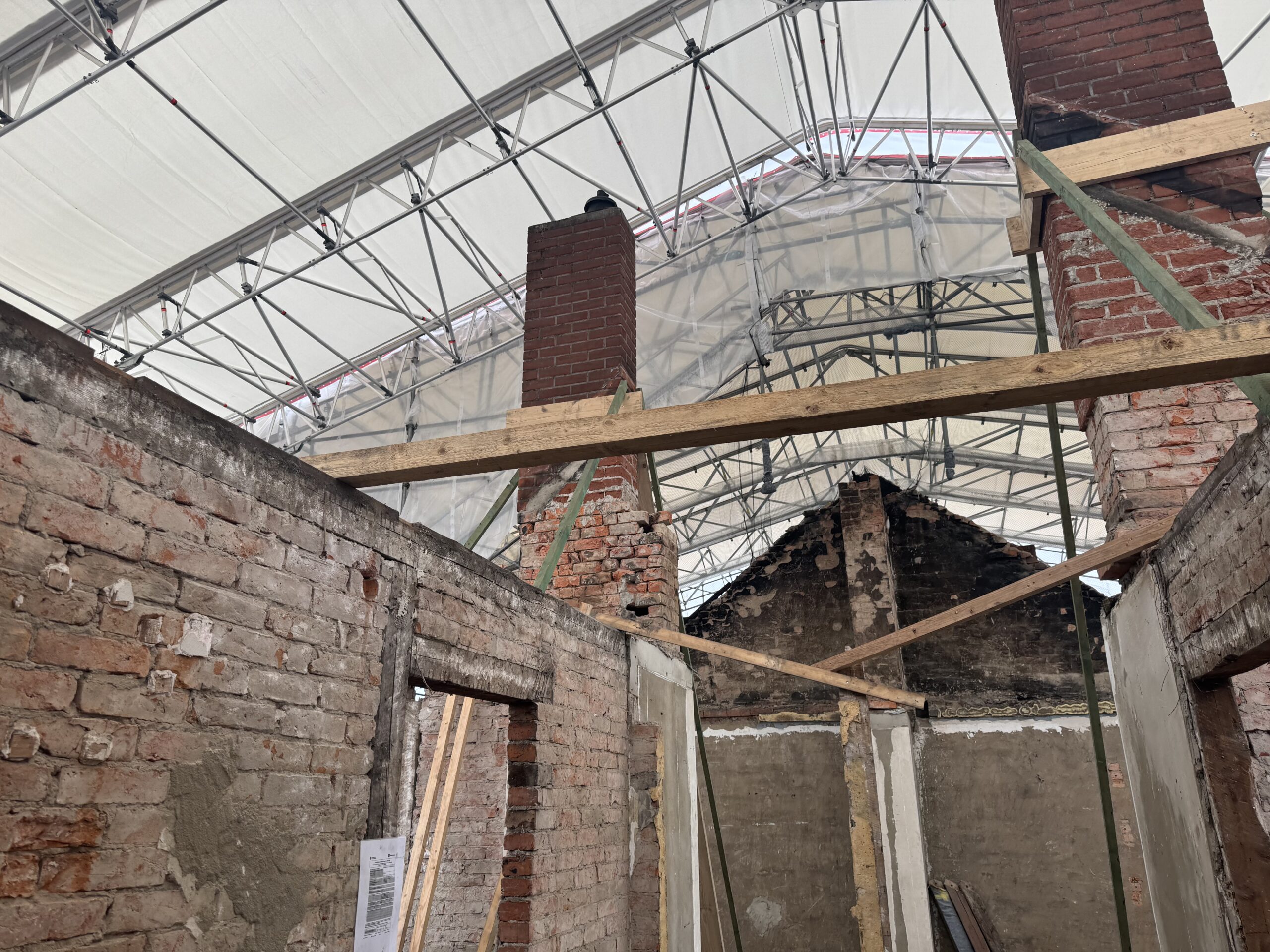 Im Zuge der Sanierung wird der gesamte Dachstuhl erneuert und in der darunterliegenden Etage eine Kernsanierung durchgeführt.